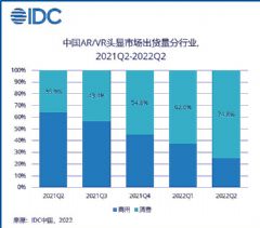 2022上半年,AR/VR市场整体出货达58.6万台(AR出货2.8万台,VR出货55.8万台),消费者市场出货占比持续提升。…详情>>